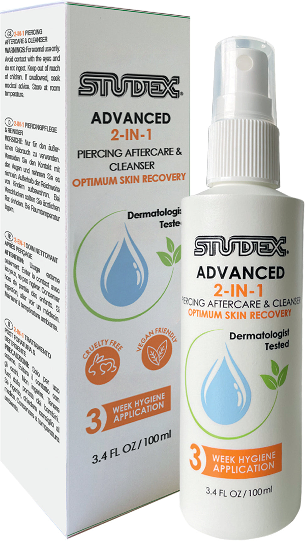 100 ml’lik 2’si 1 sprey, piercing sonrası bakım için