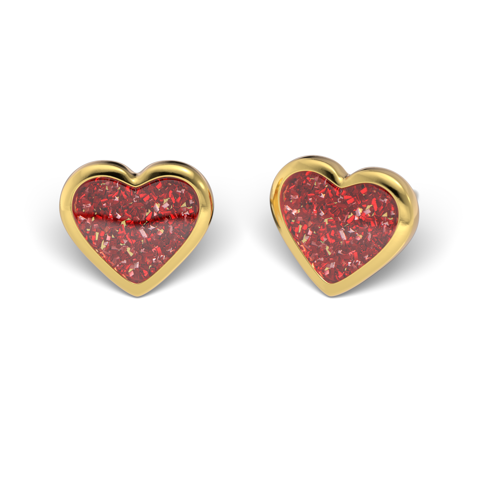 Simli, Kırmızı Kalp, Altın Kaplama, 6 mm