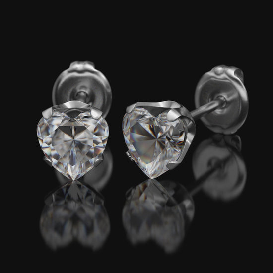 Sensitive by STUDEX® Prong Setting, Cubic Zirconia Heart Cut Tube Cube