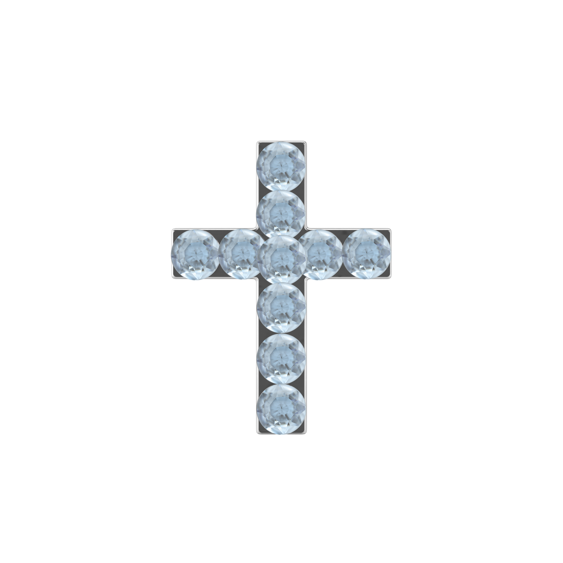 Sembol, Akuamarin Taşlı Haç, Cerrahi Paslanmaz Çelik, 6,8 mm